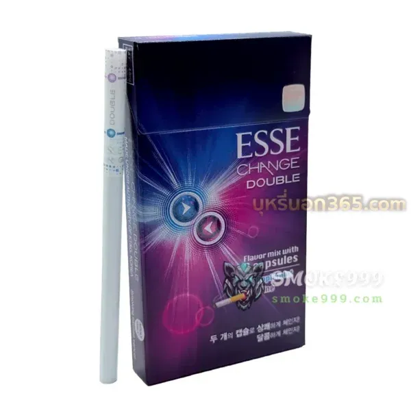 บุหรี่นอก Esse Change สีม่วง ไวน์ โดดเด่นด้วยความสนุกในการเลือกกลิ่น มีเม็ดบีบ 2 เม็ด — เม็ดไวท์แดงหอม กับเม็ดเมนทอลเย็นสดชื่น จะบีบเม็ดไหนก่อนก็ได้ หรือจะบีบทั้งสองพร้อมกันก็เปลี่ยนกลิ่นอารมณ์ไปอีกแบบ รสชาติพื้นฐานนุ่มละมุน หอมกำลังดี ไม่แรงจนเกินไป เหมาะกับคนที่ชอบกลิ่นหอมอ่อนๆ ผสมความเย็นแบบไม่ฉุน ถือเป็นตัวเลือกยอดนิยมของสายหวานที่อยากลองอะไรใหม่ๆ ทุกครั้งที่เปลี่ยนเม็ด ก็เหมือนได้ประสบการณ์ใหม่เสมอ